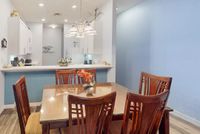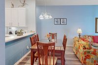 The lounge/dining room is the heart of the condo and comprises a 3 seated (double) sofa bed, loveseat and a large dining table with 6 chairs. Our media unit has a large cable TV, Roku streaming box, books and games. Patio doors lead out to a small area, with table and 2 chairs, mesh screened for your security and comfort.