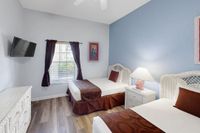 The second double room also has a queen size bed, wardrobe and drawer space, plus a wall mounted cable TV.