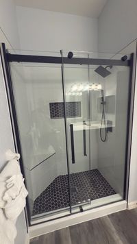 The family bathroom is located outside of the double and twin rooms. It has a large walk-in shower, wash basin unit and toilet.